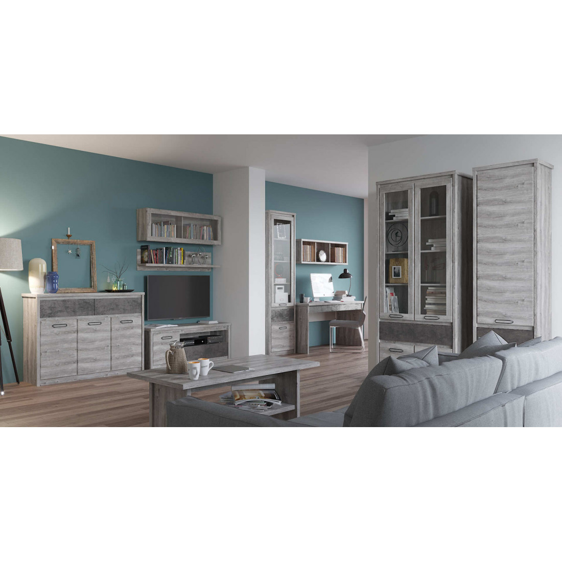 Гостиная Джаз выполнена в современном стиле. Отличительной особенностью этой коллекции является одновременное применение двух вариантов открывания двери: при помощи металлических ручек на одних фасадах и внутренней фрезеровки на других. Фасады выдвижных ящиков могут быть выполнены как в цвете оникс, так и в цвете каштан найроби. Эта мебель станет заслуженным украшением для любого интерьера.