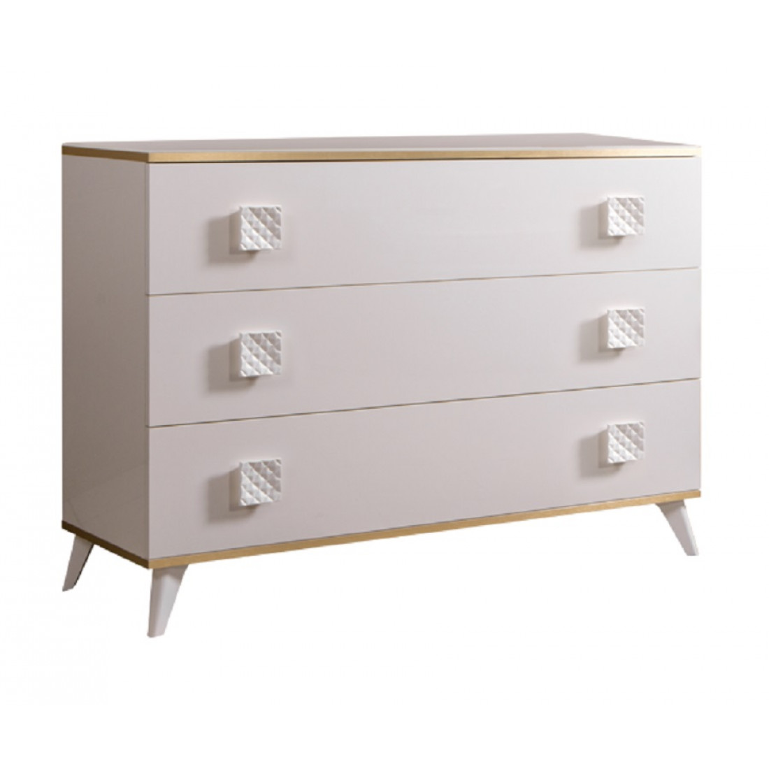 Вдохновленная самой Италией мебель коллекции "Diora" это сочетание дизайна, красоты и функционала. Корпус комода доступен в двух цветах, лакированный «орех орегон» и лакированный «слоновая кость».Кромка доступна на выбор в двух цветах «золото» и «серебро».