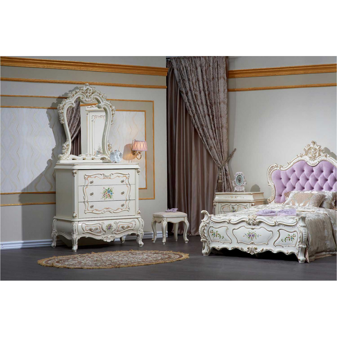 Комод с зеркалом в спальню Шанель (крем)