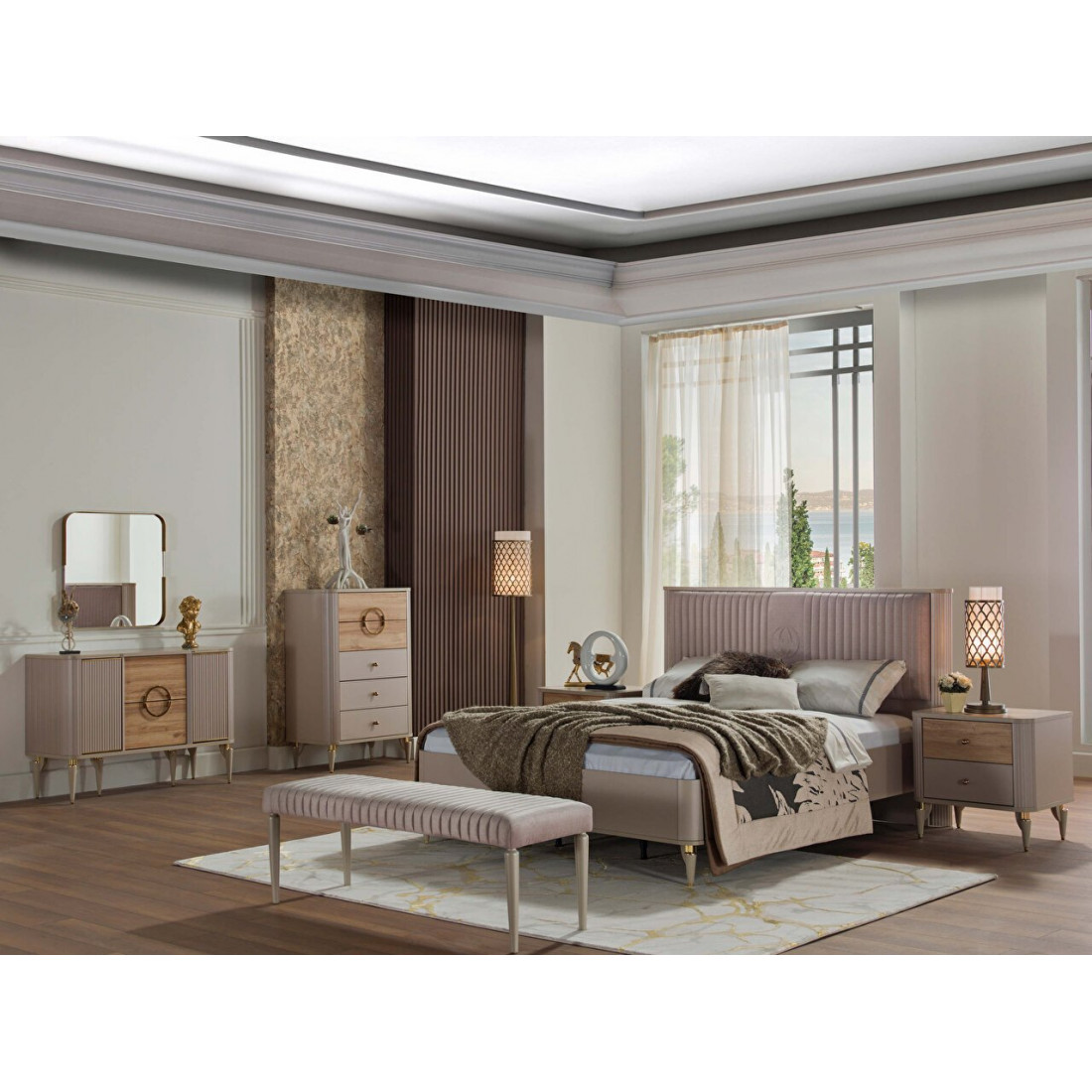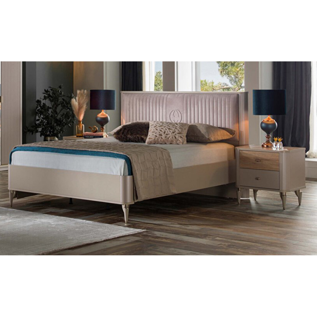 Кровать Санвито SANV-26 оригинальная по дизайну турецкая кровать в теплых постельных тонах из коллекции SANVITO. Мягкая спинка кровати декорирована тканью с вертикальной прострочкой. Скругленные боковины спинки с рифленой поверхностью создают объемный эффект. Кремовый цвет кровати прекрасно гармонирует с золотистыми вставками на  витиеватых ножках. Боковины корпуса так же имеют округлую безопасную форму. Кровать представлена тремя размерами спальных мест: 150*200, 160*200, 180*200.
