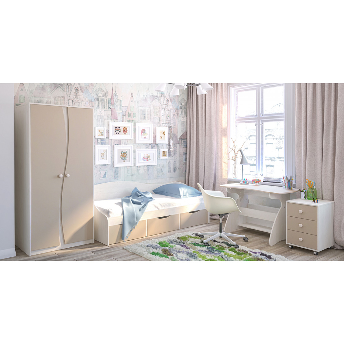 Двухстворчатый детский распашной шкаф для одежды со штангой Комби МН-211-16 капучино
