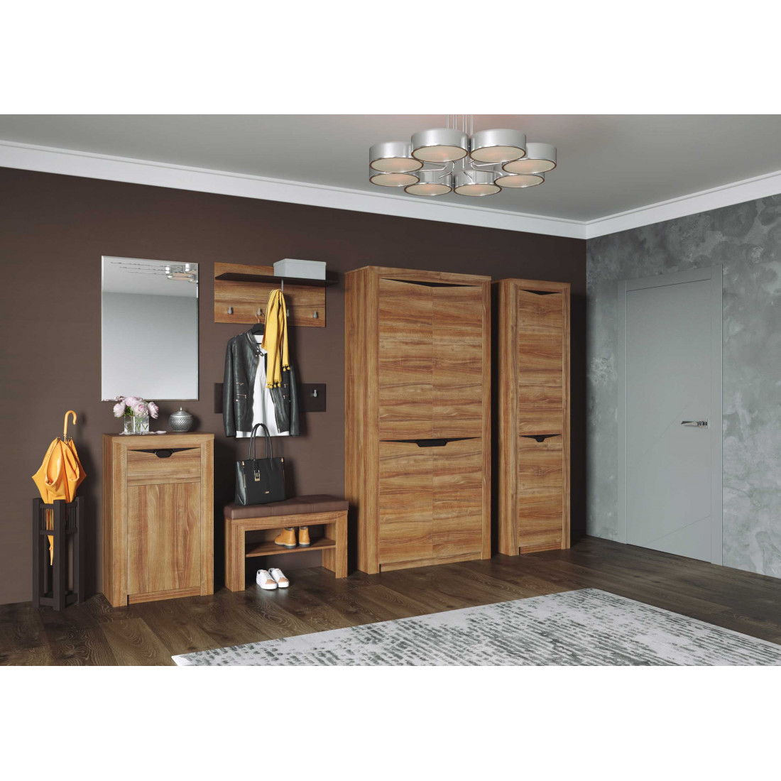 Двухдверный шкаф для прихожей Соренто - простота форм и красивая деревянная структура. Предназначен для одежды и оптимально подойдет для небольших помещений.