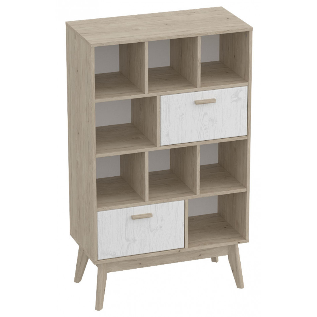 Ультратрендовый стеллаж Калгари от Мебельград, выполненный в светлых тонах с элементами сдержанного стиля 60-х - высокие ножки, выраженная деревянная текстура натурального дуба, четкие формы. Вся мебель очень мобильная, компактная, вызывает чуство легкости и свободного пространства, при этом она функциональна.